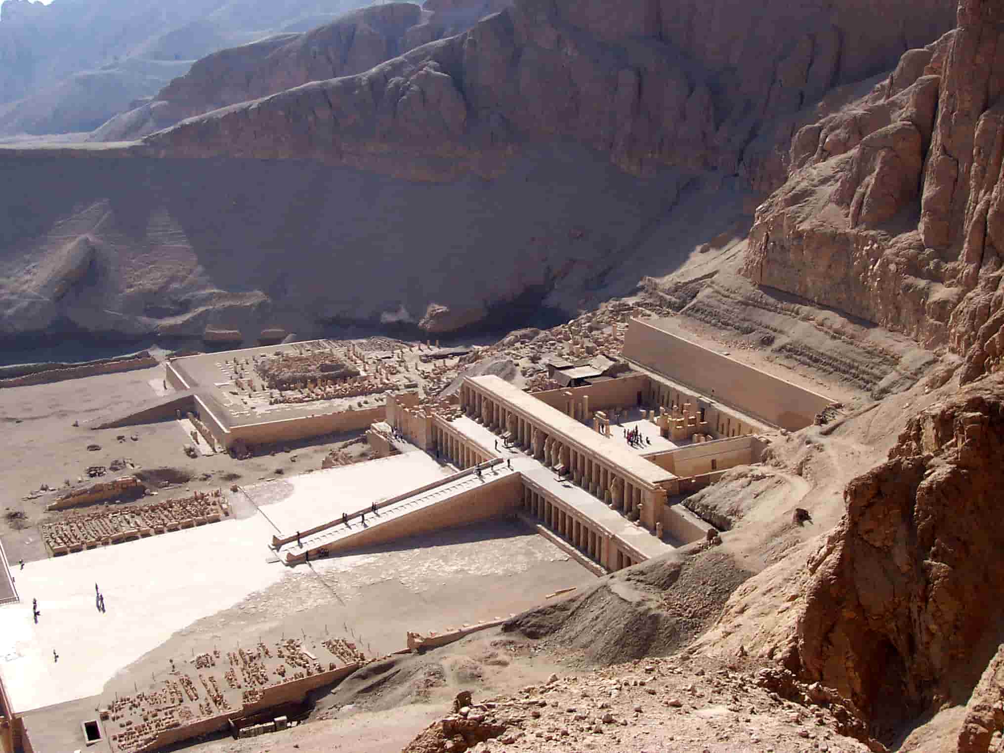 La visita de la orilla occidental incluye un recorrido por el Valle de los Reyes donde se visitan 3 tumbas de los grandes faraones del Imperio Nuevo, permitiendo admirar las impresionantes escenas religiosas de su viaje al Más Allá. No se incluye la entrada a la tumba de Tutankhamón que se paga directamente en destino. Posteriormente se visita el templo funerario de la reina Hatshepsut, una obra arquitectónica única con terrazas escalonadas y bellos relieves que relatan la legitimidad de su ascenso al trono como rey y los viajes comerciales al país de Punt en busca del árbol del incienso. También se podrán contemplar las dos gigantescas estatuas de Amenhotep III conocidas como los Colosos de Memnón. Almuerzo, luego la visita de la orilla oriental donde se encuentran los mayores templos Karnak y Luxor.