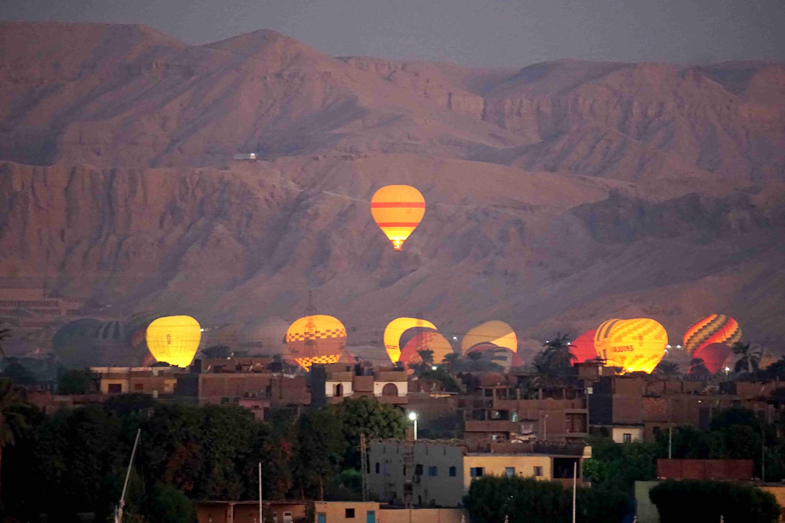 Vuelo en globo aerostático sobre la ribera occidental de Luxor al amanecer, desde el cual podrá admirar cómo el sol ilumina lentamente el valle del Nilo, sus verdes cultivos, el desierto que lo rodea y los imponentes monumentos del antiguo Egipto que se encuentran en la zona. La excursión se realiza de madrugada, incluyendo el transporte ida y vuelta desde el hotel o el barco.