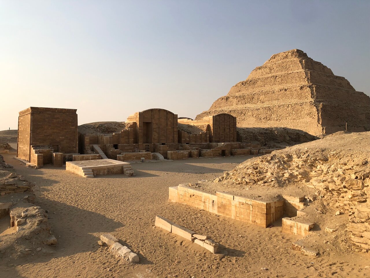 Desayuno. Salida para visitar Memfis, centro de culto del Dios Ptah, fundada en tiempos de la Dinastía I que sobrevivió a lo largo de toda la historia faraónica y se convirtió en una de las ciudades más importantes del antiguo Egipto, donde podremos admirar numerosos restos arqueológicos, como el coloso de Ramsés II y la Esfinge de alabastro. Continuaremos hasta la gran necrópolis de Saqqara, donde se conservan los vestigios de los principales periodos de la historia de Egipto, destacando la Pirámide Escalonada del Faraón Zoser, considerada la pirámide más antigua construida por el arquitecto Imhotep. Regreso a El Cairo para el Almuerzo. Tarde libre para pasear por esta gran urbe que supera los 20 millones de habitantes. Por la noche,cena en un barco sobre el río Nilo para admirar las vistas nocturnas de la ciudad, donde disfrutaremos del Folklore tradicional del país y su famosa Danza del Vientre. Alojamiento.